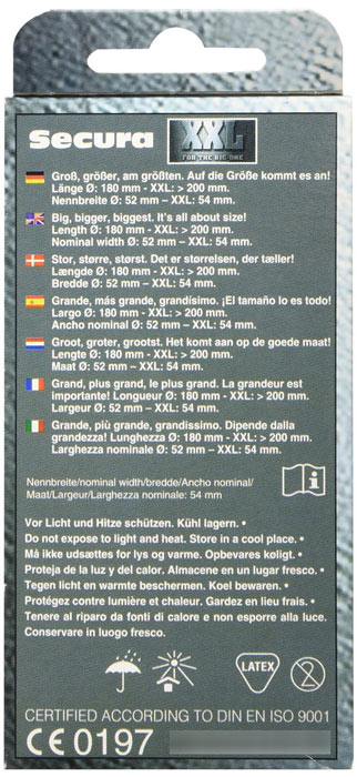 Préservatifs Secura XXL For the Big One - x12 Zoom × Préservatifs Secura XXL For the Big One - x12 Previous Next ARTICLE NON DISPONIBLE Notre prix: 6.10 € (0.51€/u) Réf.PSV-sec-XXL12 cet article me fait gagner 3 points de fidélité Descriptif: Lire le descriptif Préservatifs XXL, avec lubrifiant et réservoir: capotes plus grandes que de coutume pour les verges plus épaisses et plus longues. Préservatifs XXL fabriqués en latex de caoutchouc naturel. longueur: 200 mm largeur nominale = 54 mm Indications:Préservatifs Secura XXL For the Big One: Contraceptifs pour relation sexuelle. Les préservatifs masculins permettent de se protéger des infections sexuellement transmissibles (IST) et contre l'infection du VIH.Conseils d'utilisation:♦ Lire attentivement la notice située sur ou à l'intérieur de l'étui avant utilisation.♦ Un préservatif est un produit à usage unique: le réutiliser augmente le risque de rupture ou d'infection.♦ Aucune méthode de contraception ne peut garantir une protection efficace à 100% contre une grossesse, le virus VIH (SIDA) ou les autres infections sexuellement transmissibles.♦ Garder les préservatifs dans leur emballage d'origine, dans un espace propre, frais et sec, à l’abri de sources de chaleur. Ne pas exposer à la lumière directe du soleil. Informations complémentaires: ♦ Qté:12 - Caractéristiques:XL♦ Consommable Hygiène : Préservatifs (x 12) Catégories: Préservatifs Lubrifist - 200 ml x 6 72.00 € Lubrifiant Just Glide ''Anal'' - 1.0 l 29.90 € Lubrifiant BIO ''Super'' - HOT Productions - 100 ml 16.70 € Commandez aussi par téléphone: 01 30 40 15 50, (tarif local ou gratuit selon votre opérateur), du lundi au samedi, de 9H00 à 12H00 et de 13H00 à 20H00. Le samedi et le dimanche de 8H00 à 19H00 en continu. Une recherche d´article ? Ecrivez nous à Une exclusivité sur le marché des boutiques gay en France: le descriptif de chacun de nos articles fait apparaître le délai moyen d'acheminement en temps réel. Pensez à le vérifier avant toute question au service clientèle. AGayN ® est une marque déposée sous la référence 06/3426620. Les promos du moment | Votre Espace Client | Retour au menu | Conditions Générales de Vente