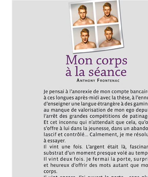 Mon corps à la séance - Roman Textes Gais [Epuisé] Zoom × Mon corps à la séance - Roman Textes Gais [Epuisé] Previous Next ARTICLE NON DISPONIBLE Notre prix: 9.95 € Réf.9791029402265 cet article me fait gagner 5 points de fidélité Descriptif: Lire le descriptif Mon corps à la séance - Anthony Frontenac Je pensai à l’anorexie de mon compte bancaire, à ces longues après-midi avec la thèse, à l’ennui d’enseigner une langue étrangère à des gamins, au manque de valorisation de mon ego depuis l’arrêt des grandes compétitions de patinage. Et cet inconnu qui n’attendait que cela, qu’on s’offre à lui dans la jeunesse, dans un abandon lascif et contrôlé… Calmement, je me résolus à essayer. Il vint une fois. L’argent était là, fascinant substrat d’un moment presque volé au temps. Il vint deux fois. Je fermai la porte, surpris et heureux d’offrir des mots autant que mon corps. Il vint encore. J’ai ouvert la porte… sans plus d’appréhension… conscient désormais de donner mon corps à la séance. Informations complémentaires: ♦ Nb Pages:133 Catégories: Romans GayNouveautés et Actus Sextoys Lubrifiant Porn Sperm - Sperme artificiel - 250 ml 13.10 € Lubrifiant Eros Aqua - 1.0 l 39.90 € Lubrifiant Just Glide ''BIO Medical'' - 200 ml 12.50 € Commandez aussi par téléphone: 01 30 40 15 50, (tarif local ou gratuit selon votre opérateur), du lundi au samedi, de 9H00 à 12H00 et de 13H00 à 20H00. Le samedi et le dimanche de 8H00 à 19H00 en continu. Une recherche d´article ? Ecrivez nous à Une exclusivité sur le marché des boutiques gay en France: le descriptif de chacun de nos articles fait apparaître le délai moyen d'acheminement en temps réel. Pensez à le vérifier avant toute question au service clientèle. AGayN ® est une marque déposée sous la référence 06/3426620. Les promos du moment | Votre Espace Client | Retour au menu | Conditions Générales de Vente