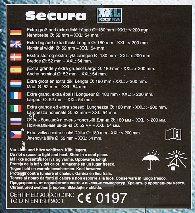 Préservatifs Secura XXL For the Big One - x24 Zoom × Préservatifs Secura XXL For the Big One - x24 Previous Next ARTICLE NON DISPONIBLE Notre prix: 11.00 € (0.46€/u) Réf.PSV-sec-XXL24 cet article me fait gagner 3 points de fidélité Descriptif: Lire le descriptif Préservatifs XXL, avec lubrifiant et réservoir: capotes plus grandes que de coutume pour les verges plus épaisses et plus longues. Préservatifs XXL fabriqués en latex de caoutchouc naturel. longueur: 200 mm largeur nominale = 54 mm Indications:Préservatifs Secura XXL For the Big One: Contraceptifs pour relation sexuelle. Les préservatifs masculins permettent de se protéger des infections sexuellement transmissibles (IST) et contre l'infection du VIH.Conseils d'utilisation:♦ Lire attentivement la notice située sur ou à l'intérieur de l'étui avant utilisation.♦ Un préservatif est un produit à usage unique: le réutiliser augmente le risque de rupture ou d'infection.♦ Aucune méthode de contraception ne peut garantir une protection efficace à 100% contre une grossesse, le virus VIH (SIDA) ou les autres infections sexuellement transmissibles.♦ Garder les préservatifs dans leur emballage d'origine, dans un espace propre, frais et sec, à l’abri de sources de chaleur. Ne pas exposer à la lumière directe du soleil. Informations complémentaires: ♦ Qté:24 - Caractéristiques:XL♦ Consommable Hygiène : Préservatifs (x 24) Catégories: Préservatifs Lubrifist - 200 ml x 6 72.00 € Gel Lubrifiant Lubrix - 1.0 l 29.25 € Male Lubrifiant Relax Anal - Cobeco - 250 ml 19.40 € Commandez aussi par téléphone: 01 30 40 15 50, (tarif local ou gratuit selon votre opérateur), du lundi au samedi, de 9H00 à 12H00 et de 13H00 à 20H00. Le samedi et le dimanche de 8H00 à 19H00 en continu. Une recherche d´article ? Ecrivez nous à Une exclusivité sur le marché des boutiques gay en France: le descriptif de chacun de nos articles fait apparaître le délai moyen d'acheminement en temps réel. Pensez à le vérifier avant toute question au service clientèle. AGayN ® est une marque déposée sous la référence 06/3426620. Les promos du moment | Votre Espace Client | Retour au menu | Conditions Générales de Vente