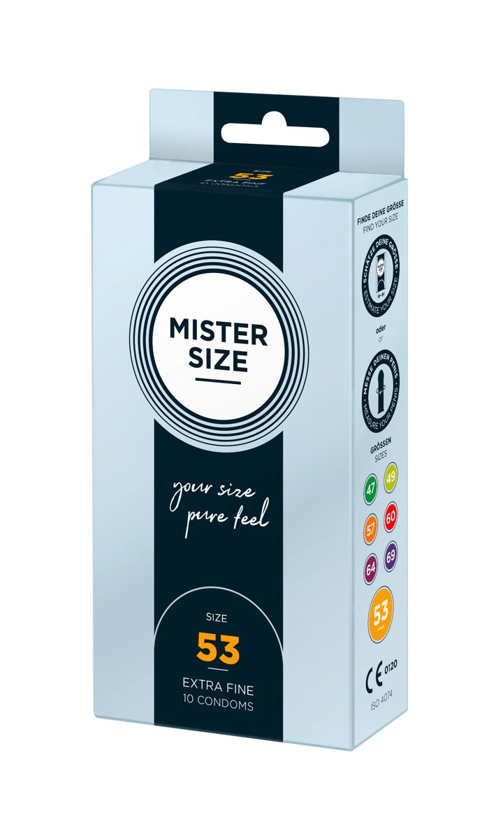 Préservatifs Mister Size ''53'': Contraceptifs pour relation sexuelle. Les préservatifs masculins permettent de se protéger des infections sexuellement transmissibles (IST) et contre l'infection du VIH.