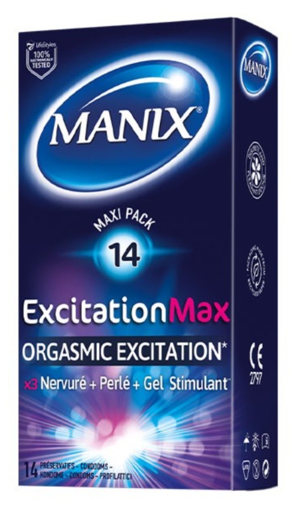 Préservatifs Manix Pack Excitation Max - x14 Zoom × Préservatifs Manix Pack Excitation Max - x14 ARTICLE NON DISPONIBLE Notre prix: 9.20 € Réf.PSV-MX-CNK 376-801 Descriptif: Lire le descriptif Les préservatifs Manix Excitation Max Maxi Pack 14 Préservatifs ont été mis au point pour procurer à son utilisateur un plaisir intense ! Déroulez sur votre verge le Manix Excitation Max: vous ne reviendrez plus qu'à cette gamme ! Leur formulation triple stimulation, texture nervurée, perlée et gel effet chauffant, vous assure une excitation orgasmique ! Les préservatifs Manix sont fabriqués avec les normes les plus exigeantes pour la sérénité : forme stimulante, couleur naturelle et matière en latex lubrifié avec réservoir. Testés électroniquement à 100%. Longueur : 180mm Largeur nominale : 52mm Surface : Perlée + Nervurée Réservoir : Oui Lubrifié : Oui lubrifiant chauffant Couleur : Transparent Norme : CEIndications:Préservatifs Manix Pack Excitation Max: Contraceptifs pour relation sexuelle. Les préservatifs masculins permettent de se protéger des infections sexuellement transmissibles (IST) et contre l'infection du VIH.Conseils d'utilisation:♦ Lire attentivement la notice située sur ou à l'intérieur de l'étui avant utilisation.♦ Un préservatif est un produit à usage unique: le réutiliser augmente le risque de rupture ou d'infection.♦ Aucune méthode de contraception ne peut garantir une protection efficace à 100% contre une grossesse, le virus VIH (SIDA) ou les autres infections sexuellement transmissibles.♦ Garder les préservatifs dans leur emballage d'origine, dans un espace propre, frais et sec, à l’abri de sources de chaleur. Ne pas exposer à la lumière directe du soleil. Informations complémentaires: ♦ Qté:14♦ Consommable Hygiène : Préservatifs (x 12) Catégories: PréservatifsNouveautés et Actus Sextoys Lubrifiant Just Glide ''BIO Medical'' - 50 ml 8.00 € Male Lubrifiant White - Cobeco - 250 ml 19.50 € Body Lube - Cobeco - 1.0 l 32.50 € Commandez aussi par téléphone: 01 30 40 15 50, (tarif local ou gratuit selon votre opérateur), du lundi au samedi, de 9H00 à 12H00 et de 13H00 à 20H00. Le samedi et le dimanche de 8H00 à 19H00 en continu. Une recherche d´article ? Ecrivez nous à Une exclusivité sur le marché des boutiques gay en France: le descriptif de chacun de nos articles fait apparaître le délai moyen d'acheminement en temps réel. Pensez à le vérifier avant toute question au service clientèle. AGayN ® est une marque déposée sous la référence 06/3426620. Les promos du moment | Votre Espace Client | Retour au menu | Conditions Générales de Vente