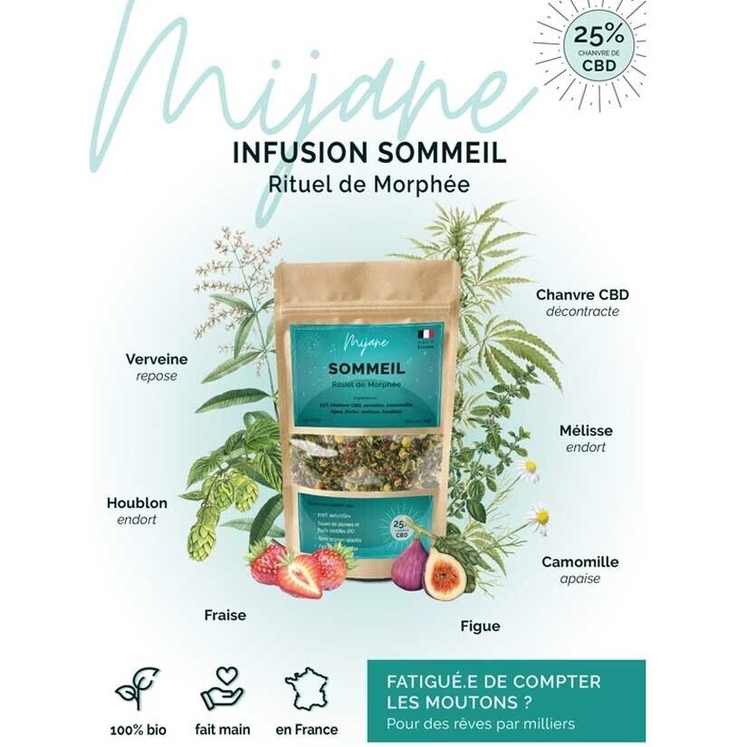 Infusion CBD Sommeil ''Rituel de Morphée'' - Mijane - 31g Zoom × Infusion CBD Sommeil ''Rituel de Morphée'' - Mijane - 31g Previous Next ARTICLE NON DISPONIBLE Notre prix: 14.50 € Réf.MIJ-INF-SOMMEIL Informations légales sur les produits CBD cet article me fait gagner 3 points de fidélité Descriptif: Lire le descriptif Des rêves par milliers avec Rituel de Morphée et ses 25% de CBD Cette infusion de chanvre 100 % bio va vous changer la vie. Un mélange de plantes 100 % bio et made in France qui va vous changer la vie. Une infusion pour le sommeil 100% naturelle, fabriquée en France, avec des plantes et des fruits tous issus de l’agriculture biologique. Rituel de Morphée contient 25% de chanvre CBD (dont 50% de fleurs fedora et 50% de feuilles). Avec l'infusion CBD Rituel de Morphée, dormez en toute tranquillité ! Une infusion dont les plantes sont issues de l'agriculture biologique, qui font l'objet d'un contrôle qualité rigoureux et d'une traçabilité optimale. Sans THC, elles ne créent pas d'effets psychoactifs, ni de dépendance à long terme. Informations complémentaires: ♦ Caractéristiques:Parfumé - Forme:Sachet - Type:Fleurs séchées - Poids:31g - Fabriqué en France - Effets:Sommeil - Arôme:Chanvre, Verveine, Camomille, Figue, Fraise, Mélisse, houblon - Produit CBD - Taux CBD:<1%♦ Consommable Comestible : Infusions♦ Composition:verveine, mélisse, fraise, camomille, houblon, figue, chanvre (25%) Arômes : fraise séchée et figues séchées♦ Emploi:Laissez-vous tomber dans les bras de Morphée. Plongez votre rituel dans une eau frémissante (environ 90°C) pendant 5 à 10 mn et dégustez-le environ 1h avant de vous coucher. Ajouter un corps gras (huile de CBD, lait, miel?) pour une parfaite diffusion des principes actifs du CBD♦ Précautions:Important: Usage interdit au moins de 18 ans, ne pas utiliser chez la femme enceinte et allaitante. Conduite déconseillée: Interaction possible avec certains médicaments. Si vous suivez un traitement, nous vous conseillons d'en parler à votre médecin ou à votre pharmacien. Ces produits ne sont pas des médicaments. Tenir hors de portée des enfants. Si vous avez prévu de voyager avec ces produits, nous vous invitons à vérifier les lois locales en vigueur. Se référer aux mentions d'avertissement sur l'emballage du produit avant toute utilisation. Conseils: - il est déconseillé de dépasser 300 mg de CBD par jour. - Conserver dans un endroit frais et sec avant ouverture, et au réfrigérateur après ouverture selon type de conditionnement. - Eviter tout contact direct ou indirect avec le soleil. Catégories: Produits CBDPromos Sextoys GayArticles DLUO courte Lubrifiant Just Glide ''Anal'' - 1.0 l 29.90 € Crème de masturbation ''Hot'' - MEDIAX - 150 ml 13.40 € Gel Lubrix 200 ml x 6 49.14 € Commandez aussi par téléphone: 01 30 40 15 50, (tarif local ou gratuit selon votre opérateur), du lundi au samedi, de 9H00 à 12H00 et de 13H00 à 20H00. Le samedi et le dimanche de 8H00 à 19H00 en continu. Une recherche d´article ? Ecrivez nous à Une exclusivité sur le marché des boutiques gay en France: le descriptif de chacun de nos articles fait apparaître le délai moyen d'acheminement en temps réel. Pensez à le vérifier avant toute question au service clientèle. AGayN ® est une marque déposée sous la référence 06/3426620. Les promos du moment | Votre Espace Client | Retour au menu | Conditions Générales de Vente