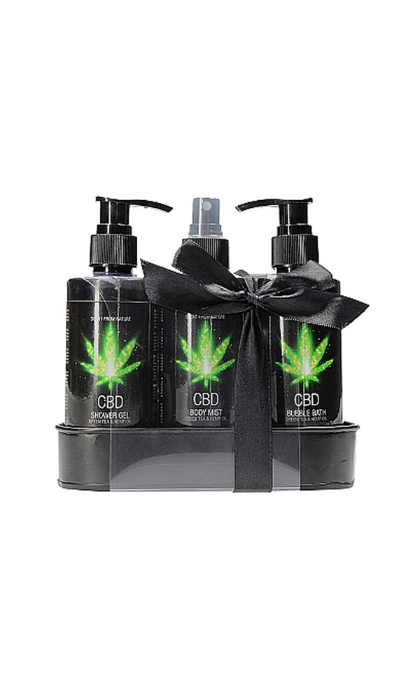 L'ensemble comprend un flacon de gel douche de 200 ml, un flacon de bain moussant de 200 ml et un flacon de brume corporelle de 200 ml.