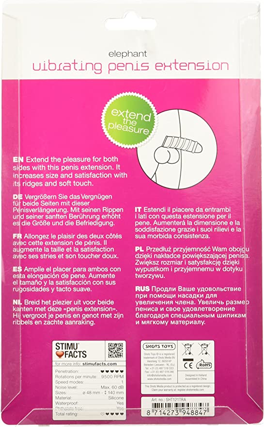 Gaine Vibro Pénis Sleeve ''Elephant'' - Shots Toys Zoom × Gaine Vibro Pénis Sleeve ''Elephant'' - Shots Toys Previous Next ARTICLE NON DISPONIBLE Notre prix: 12.50 € Réf.SHT121TRA cet article me fait gagner 3 points de fidélité Descriptif: Lire le descriptif Prolongez le plaisir des deux côtés avec cette extension de pénis. Elle augmente la taille et la satisfaction avec ses crêtes et son toucher particulier ! Extension de pénis vibrante ''Elephant'' - Transparente 12.6 x 5.5 x 20.6 centimètres Informations complémentaires: ♦ Matière:Silicone - Vibrant Catégories: Nouveautés et Actus SextoysExtenseurs de pénis Lubrifiant Eros Aqua (tube) - 50 ml 5.70 € Crème de masturbation ''Hot'' - MEDIAX - 150 ml 13.40 € Pjur Original - Limited Edition ''Pride'' - 100 ml 16.70 € Commandez aussi par téléphone: 01 30 40 15 50, (tarif local ou gratuit selon votre opérateur), du lundi au samedi, de 9H00 à 12H00 et de 13H00 à 20H00. Le samedi et le dimanche de 8H00 à 19H00 en continu. Une recherche d´article ? Ecrivez nous à Une exclusivité sur le marché des boutiques gay en France: le descriptif de chacun de nos articles fait apparaître le délai moyen d'acheminement en temps réel. Pensez à le vérifier avant toute question au service clientèle. AGayN ® est une marque déposée sous la référence 06/3426620. Les promos du moment | Votre Espace Client | Retour au menu | Conditions Générales de Vente