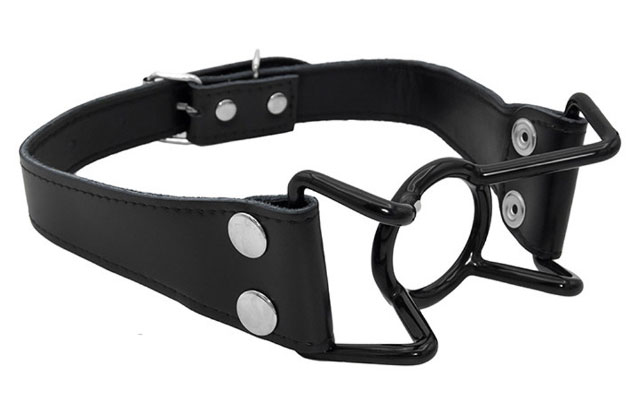 La sangle en similicuir peut être réglée généreusement par une boucle - elle convient à toutes les têtes. Le diamètre intérieur de l'anneau est d'un peu moins de 4 cm. Un pénis plus épais ne passe pas, mais le jeu de la langue et l'injection directe ne posent pas de problème.