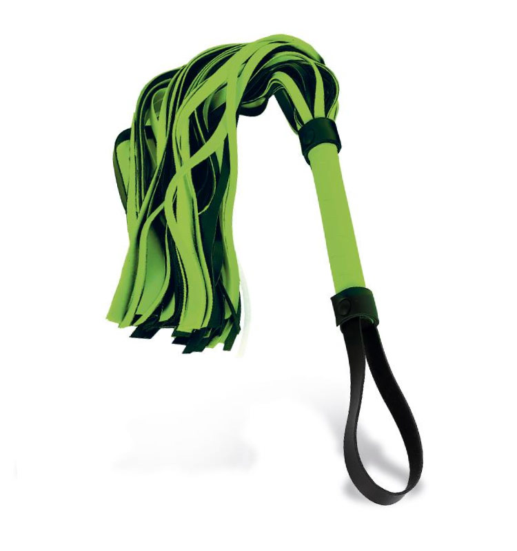 Créez de nouveaux fantasmes avec ce fouet phosphorescent. Le manche, doté d'un petit crochet, et une partie des queues sont verts, ce qui les rend phosphorescents dans l'obscurité. Les matériaux utilisés sont résistants, en cuir végétalien, et le poids est léger pour un confort optimal.