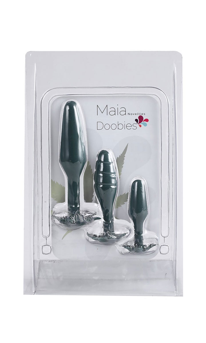 Le Pack Doobie de Maia Toys est notre kit d'entraînement anal de 3 pièces qui s'ajoute à nos produits de la série 420 qui connaissent un grand succès. L'ensemble Doobies est composé de 3 plugs anaux avec une base en feuilles de chanvre. Il s'agit d'un ensemble gradué, donc les tailles vont de Petit, Moyen, à Grand. C'est un excellent set pour les débutants en matière de jeu anal.