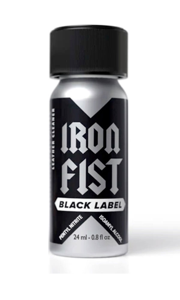 Le Poppers Iron Fist Black Label en est la nouvelle déclinaison à base de nitrite de Pentyl toujours contenu dans une bouteille en alu incassable de 24ml.