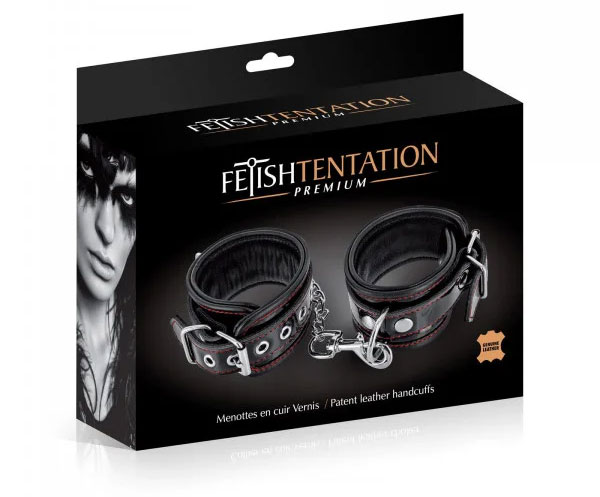 Achetez dès maintenant cette jolie paire de menottes en cuir noir laqué et entièrement doublé avec une haute qualité de finitions.
