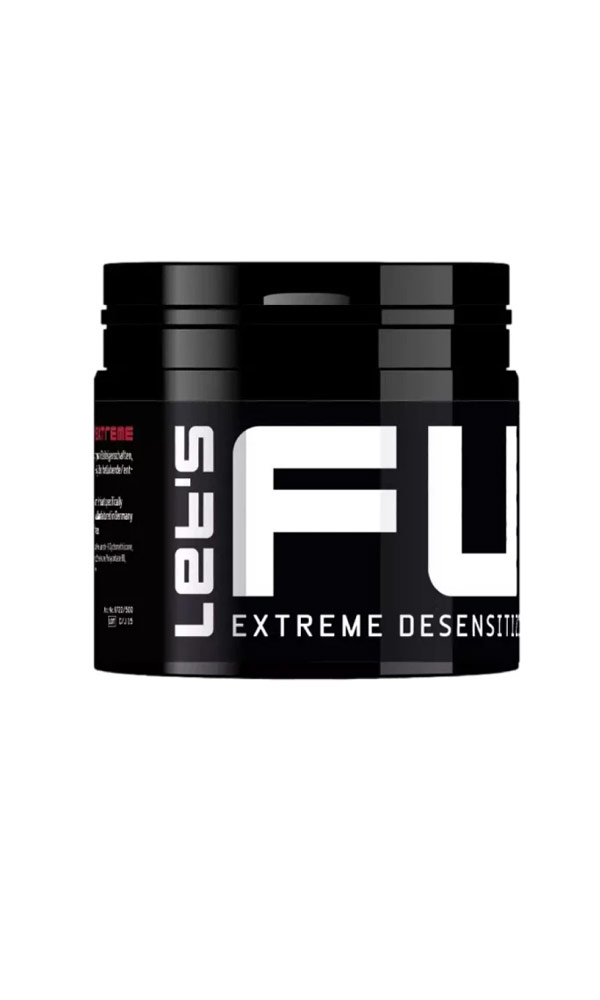 Grâce à sa combinaison spéciale d'agents actifs, LET’s FUCK EXTREME dispose de caractéristiques anesthésiante / calmante et s'adapte ainsi parfaitement à tous les types extrêmes de dilatation anale ou à la préparation pour des godes particulièrement gros.