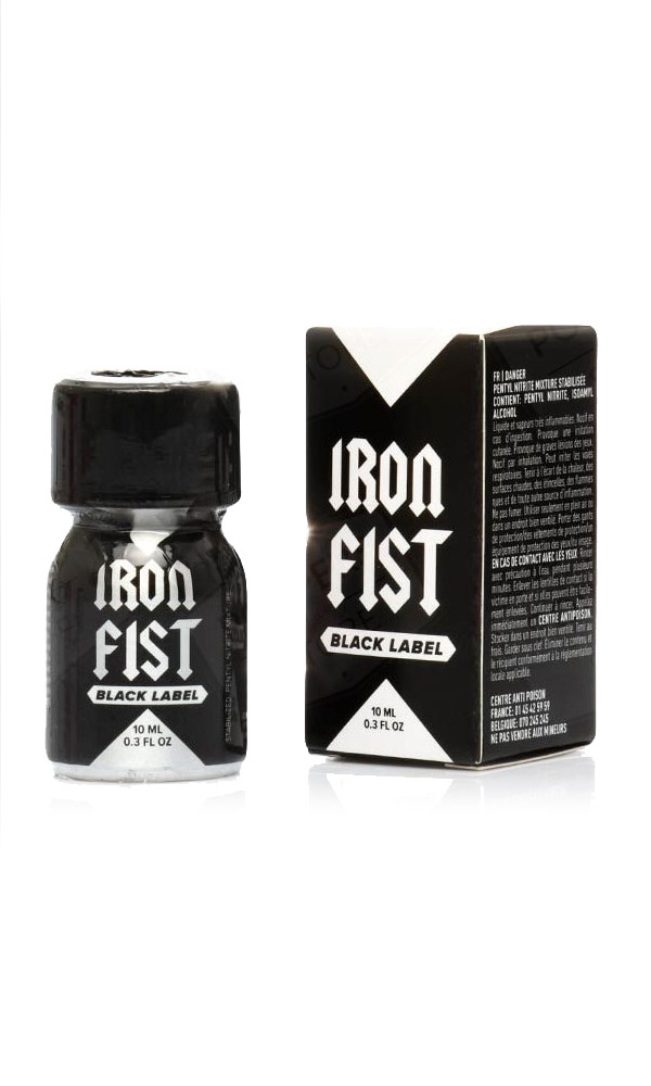 Le Poppers Iron Fist Black Label en est la nouvelle déclinaison à base de nitrite de Pentyl toujours contenu dans une bouteille en alu incassable de 10ml.