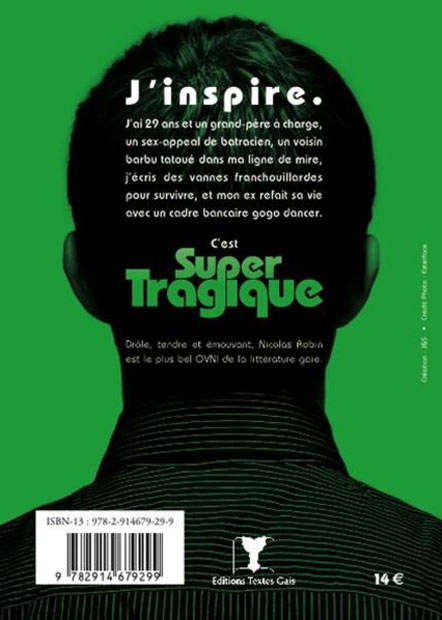 Super Tragique - Roman Textes Gais Zoom × Super Tragique - Roman Textes Gais Previous Next ARTICLE NON DISPONIBLE Notre prix: 7.70 € Au lieu de 14.00 € Offre valable jusqu'au 14/12/2025 Réf.9782914679299 -45% Descriptif: Lire le descriptif J'inspire. J'ai 29 ans et un grand-père à charge, un sex-appeal de batracien, un voisin barbu tatoué dans ma ligne de mire, j'écris des vannes franchouillardes pour survivre, et mon ex refait sa vie avec un cadre bancaire gogo dancer. « Drôle, tendre et émouvant, Nicolas Robin est le plus bel OVNI de la littérature gaie. » Comment le très prometteur auteur de « Bébé requin » allait-il franchir l'étape du deuxième livre ? Réussirait-il le passage de l'autobiographie au roman avec la création d'un univers et de personnages fictifs ? Nicolas Robin allait-il transformer l'essai ? Autant de questions... autant de vaines inquiétudes ! Dans « Super tragique », vous retrouverez tout ce que vous avez apprécié dans «Bébé requin» : qualité d'écriture, récit vivant et plein d'humour, véritable talent pour parler de soi avec autodérision tout en mettant les autres en avant, etc. L'intrigue est bien construite; le suspense fonctionne parfaitement et l'empathie avec le narrateur est totale. Les héros sont gays, mais l'histoire est universelle ; elle aurait aussi bien fonctionné dans un cadre hétérosexuel. Bref, dans notre shop, nous pensons que Super Tragique se transforme en Super Réussite. Et on dit Nicolas, tu viens te faire embrasser quand tu veux ! On en veut du batracien à transformer en prince charmant ! Auteur : Nicolas Robin Editeur : Editions Textes Gais Catégorie : Romans Informations complémentaires: ♦ Nb Pages:216 Catégories: Cyber Week Promos Sextoys GayDestockage Livres et Presse GayToutes nos bonnes affaires Pack Spécial 2 Lubrifist - 200 ml 30.20 € Anal Lube - Cobeco - 1.0 l 29.90 € Lubrifiant Just Glide ''BIO Medical'' - 50 ml 8.00 € Commandez aussi par téléphone: 01 30 40 15 50, (tarif local ou gratuit selon votre opérateur), du lundi au samedi, de 9H00 à 12H00 et de 13H00 à 20H00. Le samedi et le dimanche de 8H00 à 19H00 en continu. Une recherche d´article ? Ecrivez nous à Une exclusivité sur le marché des boutiques gay en France: le descriptif de chacun de nos articles fait apparaître le délai moyen d'acheminement en temps réel. Pensez à le vérifier avant toute question au service clientèle. AGayN ® est une marque déposée sous la référence 06/3426620. Les promos du moment | Votre Espace Client | Retour au menu | Conditions Générales de Vente