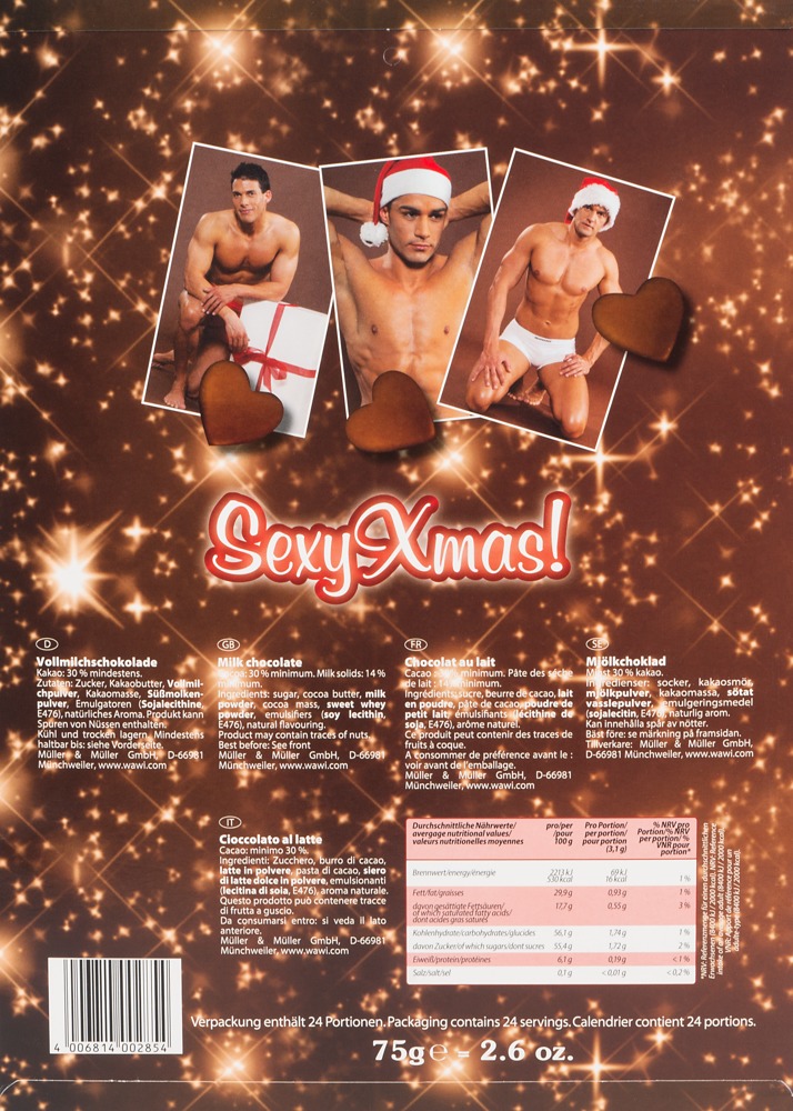 Sexy Xmas - Calendrier de l'avent Zoom × Sexy Xmas - Calendrier de l'avent Previous Next ARTICLE NON DISPONIBLE Notre prix: 12.95 € Réf.SYXMAS Descriptif: Lire le descriptif Competz les jours avant Noel ! Ce calendrier de l'avant renferme de jolis surprises, jour après jour : Un calendrier de l'avent au chocolat sexy de Noël avec des photos érotiques d'hommes. Il y a un coeur en chocolat et une photo érotique derrière chaque porte. Conservez dans un endroit frais et sec. Taille du calendrier: 35 x 25 x 1,5 cm. Contenu: 24 cœurs en chocolat au lait. Au moins 30% de cacao. Ingrédients: sucre, poudre de chocolat au lait, beurre de cacao, pâte de cacao, lactose, émulsifiants (lécithine de soja, E476), arôme: vanille, le produit peut contenir des traces de noix. Informations complémentaires: ♦ Consommable Comestible : Bonbons Catégories: Accessoires et Toys à ne pas louper !Nouveautés et Actus SextoysCalendriers Nus Masculins 2026 Lubrifiant Just Glide ''Classic'' - 500 ml 21.00 € Crème de masturbation ''Hot'' - MEDIAX - 150 ml 13.40 € Gel Anal Silicone Nanami ''Relaxing'' - 30 ml 4.90 € Commandez aussi par téléphone: 01 30 40 15 50, (tarif local ou gratuit selon votre opérateur), du lundi au samedi, de 9H00 à 12H00 et de 13H00 à 20H00. Le samedi et le dimanche de 8H00 à 19H00 en continu. Une recherche d´article ? Ecrivez nous à Une exclusivité sur le marché des boutiques gay en France: le descriptif de chacun de nos articles fait apparaître le délai moyen d'acheminement en temps réel. Pensez à le vérifier avant toute question au service clientèle. AGayN ® est une marque déposée sous la référence 06/3426620. Les promos du moment | Votre Espace Client | Retour au menu | Conditions Générales de Vente