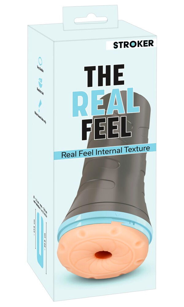Compact masturbator The Real Feel from STROKER in a discreet design. It has a tight, stretchy opening under the protective cap and an excitingly textured pleasure canal with grooves and nubs, just like in a realistic vagina. The soft skin-like material completes this exciting real feeling. With its prominent grip grooves, the masturbator lies well in the hand and provides the right grip for an intense handjob massage.