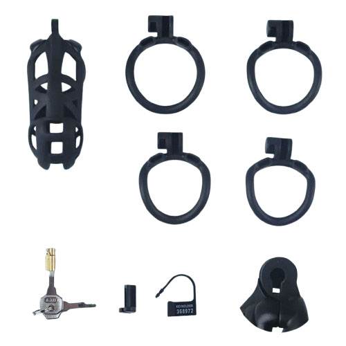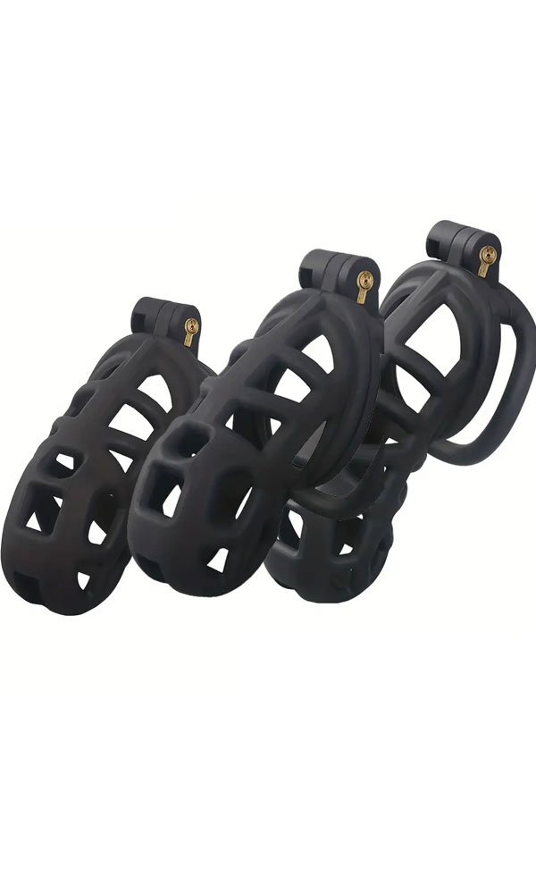 Cage de chasteté super rapport qualité/prix, fournie avec 4 anneaux bloqueurs de couilles 40,45,50,55mm (diam intérieur)